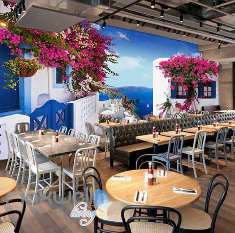 Seaside View With White Houses With Blue Doors And Windows Art Wall Murals Wallpaper Decals Prints Decor IDCWP-JB-000403