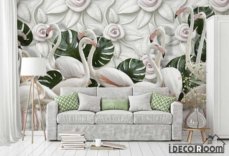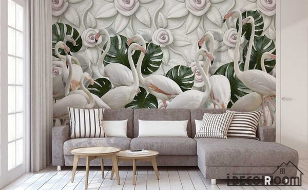 Vintage 3D Rose Flamingo Turtle Leaf wallpaper wall murals IDCWP-HL-000292