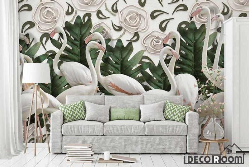Vintage Embossed Rose Flamingo Turtle Leaf wallpaper wall murals IDCWP-HL-000293