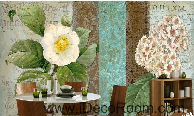 White flower illustration IDCWP-000036 Wallpaper Wall Decals Wall Art Print Mural Home Decor Gift
